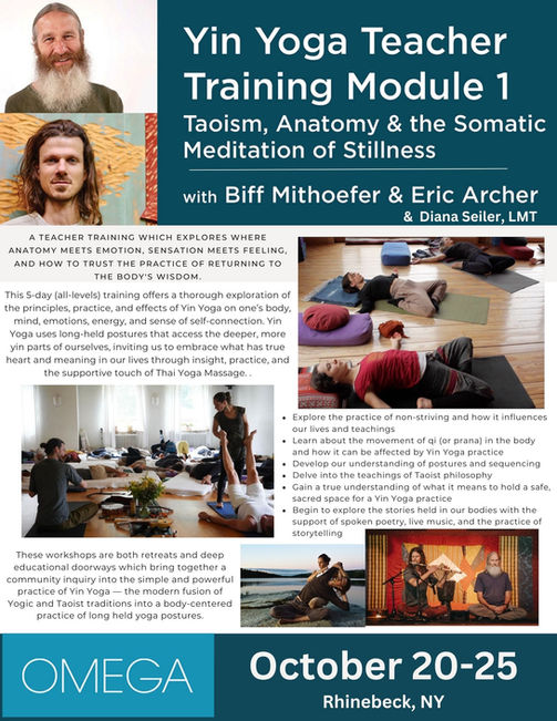 9/17-9/22 - Jamtse Yin Yoga Teacher Training Module 1 - Taoism, Anatomy, and the Somatics of Stilless - The Omega Institute for Holistic Studies, Rhinebeck, NY - BiffMithoeferYoga.com